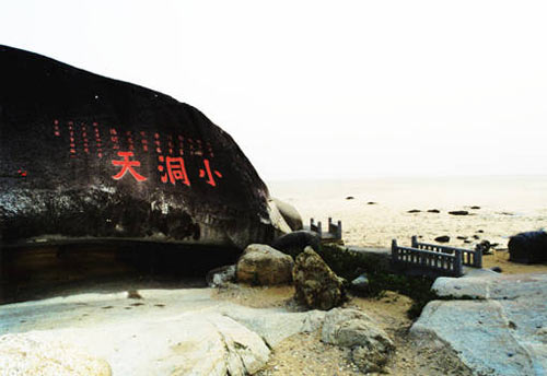 公元748年,唐代高僧鑒真為弘揚佛法第五次東渡日本時遇颶風(fēng),漂流到大小洞天登岸,在此修造大云寺,傳播佛教文化。為紀(jì)念這一段千古史話,大小洞天景區(qū)內(nèi)立有鑒真登岸群雕,展現(xiàn)唐代著名高僧鑒真及弟子?xùn)|渡日本歷盡艱辛,不畏失敗,斗志昂揚的精神面貌。同時,景區(qū)內(nèi)還有鑒真沐海、鑒真試海等景點。