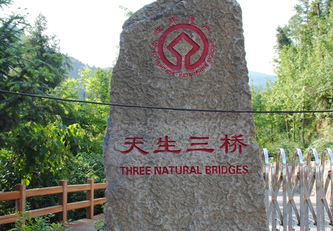 天生三橋地處仙女山南部,位居仙女山與武隆縣之間,天生三橋、芙蓉洞和后坪沖蝕型天坑三個(gè)喀斯特景點(diǎn)已成功申報(bào)為世界自然遺產(chǎn)。天生三橋景區(qū)內(nèi)天生石橋氣勢(shì)磅礴,林森木秀、飛泉流瀑,包容了山、水、霧、泉、峽、峰、溪、瀑,是一處高品位的生態(tài)旅游區(qū)。 天生三橋由天龍橋、青龍橋、黑龍橋組成,氣勢(shì)磅礴、恢宏其規(guī)模龐大、氣勢(shì)磅礴稱奇于世,是亞洲最大的天生橋群。