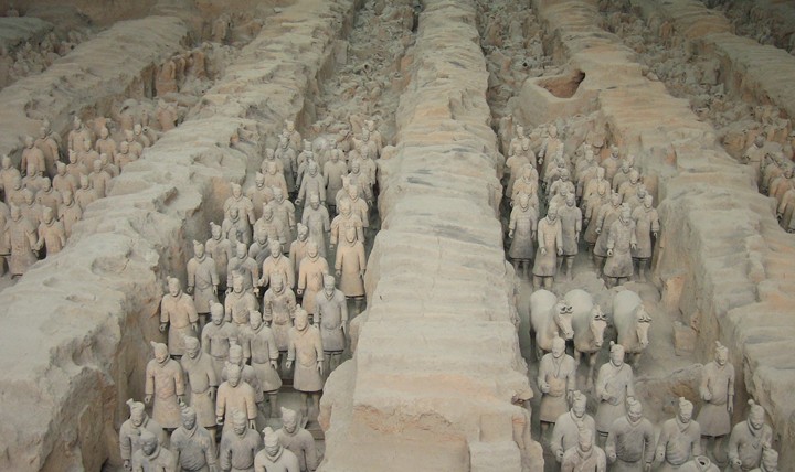 有人認為,秦始皇陵實質(zhì)上是按古代禮制“事死如事生”的要求特意設(shè)計的。因為秦始皇即位后,用了大部分的精力和時間進行統(tǒng)一全國的戰(zhàn)爭。當(dāng)時他率領(lǐng)千軍萬馬南征北戰(zhàn),從而并吞了六國,統(tǒng)一了天下。為了顯示他生前的功績,以軍隊的形式來陪葬似乎是一種必然。
