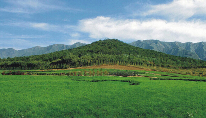 其次,陵墓位置的選擇也與當(dāng)時“依山造陵”的觀念相關(guān)。大約自春秋時代開始,各諸侯國國君相繼興起了“依山造陵”的風(fēng)氣。許多國君墓不是背山面河,就是面對視野開闊的平原,甚至有的國君墓干脆建在山顛之上,以顯示生前的崇高地位和皇權(quán)的威嚴。春秋時期的秦公墓也受這種觀念的影響,有的“葬西山”,有的葬在陵山附近。戰(zhàn)國時期的秦公墓依然承襲了“依山造陵”的典范,而秦始皇陵墓造在驪山之阿也完全符合“依山造陵”的傳統(tǒng)觀念。它背靠驪山、面向渭水,而且這一帶有著優(yōu)美的自然環(huán)境。整個驪山唯有臨潼縣東至馬額這一段山脈海拔較高,山勢起伏,層巒疊幛。從渭河北岸遠遠眺去,這段山脈左右對稱,似一巨大的屏風(fēng)立于始皇陵后,站在陵頂南望,這段山脈又呈弧形,陵位于驪山峰巒環(huán)抱之中,與整個驪山渾然一體。