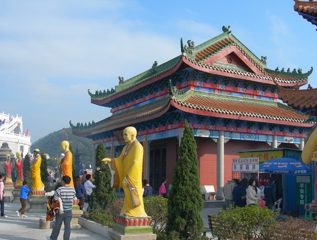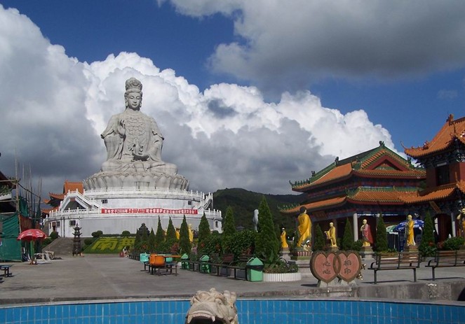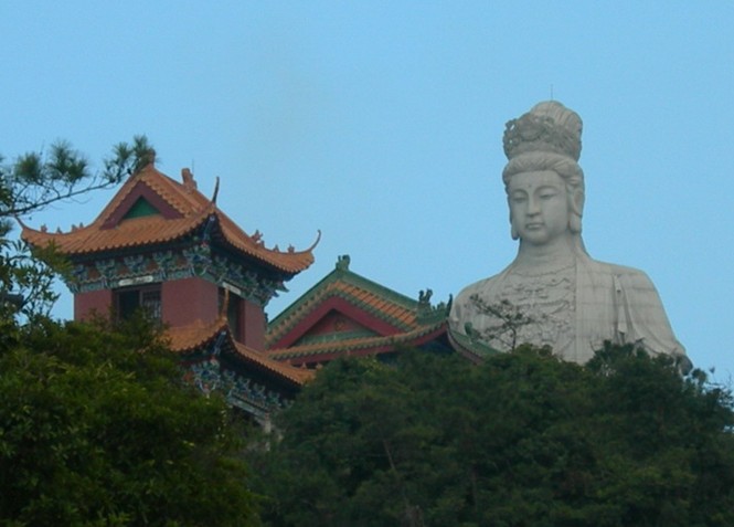 觀音廣場位于488米的觀音山頂,占地面積10000平方米,視野開闊,花繁葉茂,空氣清新,四季宜人。觀音菩薩圣像,就是目前全國乃至全世界最大的花崗巖觀音菩薩雕像。這尊觀音菩薩的圣像主題高33米,橫截面寬10.2米,體積有630立方米,總重3300噸,是由999塊0.5至8噸不等的福建蒲田優(yōu)質(zhì)花崗巖拼裝而成。圣像由國家一級(jí)雕塑師陳寶如設(shè)計(jì),全部采用人工雕鑿,從1997年9月動(dòng)工,至2001年6月竣工,歷時(shí)四年,總工日達(dá)98600個(gè)。