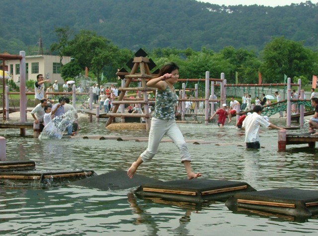 從笑翻天大門往前走50米,再左拐20米便可以看到笑翻天樂園,這里是水上玩點(diǎn)和陸地玩點(diǎn)的聚集地,在這里有花樣繁多的項目:踏籠飛渡、百尺竿頭、孤島求生、飛躍激流、水上鋼絲、踏水無痕、情侶橋……讓你盡情的在挑戰(zhàn)和驚險中突破自我。此外,軍體平衡木、高空電網(wǎng)讓你體驗(yàn)軍隊生活的快樂。畢業(yè)墻讓大家一起來翻越過去,一起畢業(yè)。這里還有兒童游玩區(qū),帶孩子的家長可千萬不要錯過,讓我們一起和家人闖關(guān)吧。