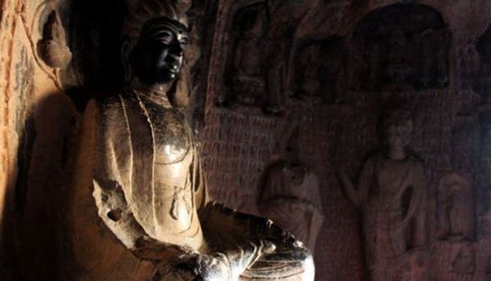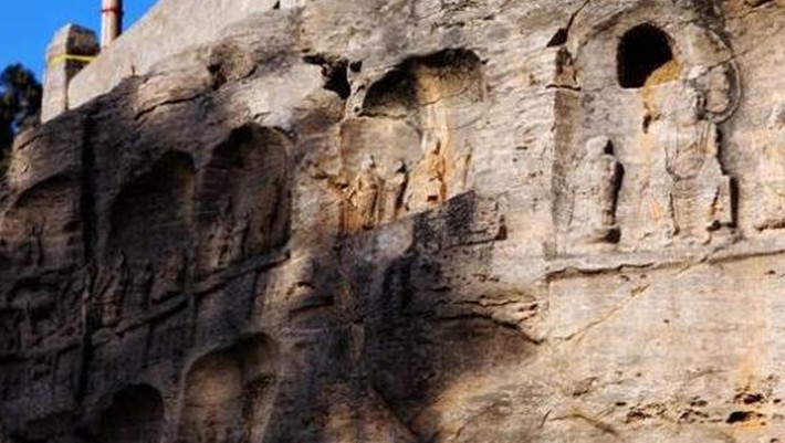 又稱萬佛寺、石空寺、千佛洞等。位于延安市黃陵縣西四十公里處的雙龍鎮(zhèn)峪村西,石窟開鑿于半山石崖間。此窟窟檐為陜西石窟中保留完好的原物,是研究宋代建筑的珍貴資料。石窟平面呈“凸”形,坐西向東,窟口為方形,寬2.4米,深2.6米,有佛像60余尊??呖谧笥矣蟹瘕惛饕粋€,以二園柱與洞口隔成三間,成檐廊。上有二層斗拱。這是宋代的仿建筑雕鑿,極為壯麗、精巧。中間是入口,走廊兩壁浮雕觀音菩薩像。石窟內(nèi)高5.3米,寬9.3米,深12米。正中為佛龕,高3.38米,寬5.9米,深4.73米,內(nèi)有大佛坐像12尊。中央坐釋迦牟尼,兩邊站立文殊、普賢二菩薩和迦葉、阿難兩弟子??唔椪械裼星智а塾^音一尊??邇?nèi)東西兩壁雕有高2.8米的立佛九尊,其中東壁有姿態(tài)優(yōu)美的赤足持碗雕像。后壁有五百羅漢和一百徒從脬雕像,場面宏大,氣勢恢宏,版權所有山東聊城聊之旅國際旅行社有限公司,轉載必究!并間以佛說法圖、磐涅圖。