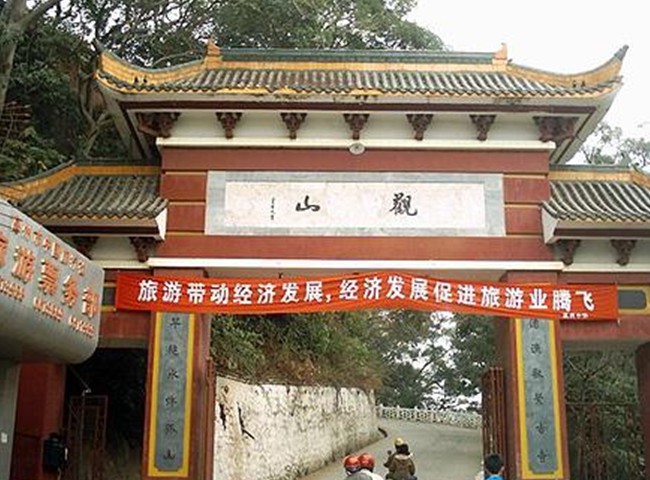 觀山寺群位于高州市之西的觀山上,觀山東臨鑒江,南對南宮嶺,山清水秀,風景迷人。明代以來,這里先后建起了觀山寺、玉泉寺、呂仙殿、潘仙殿、報德祠等寺廟建筑群。民國期間,又開辟了中山公園,建有中山亭、若虛亭、茂植亭、詠風亭、襟江亭、曠怡亭和斷碑亭等建筑,使觀山增添了不少色彩。在這些建筑群體的各個不同地方,分別樹有各種碑記,其中有詩碑、記事碑、記功碑、捐題碑以及各個名家題詞手跡碑記等。在山上的斷崖處,還有摩崖石刻,這些建筑群體和石刻群體,結(jié)構(gòu)有序,典雅大方,頗有風韻。觀山寺群中,最有特色的要數(shù)觀山寺、玉泉寺等,但由于歷遭嚴重破壞。目前尚存的只有玉泉寺、呂祖殿、潘仙殿、報德祠,其余的建筑被破壞拆除。但山光水色,景貌依然。