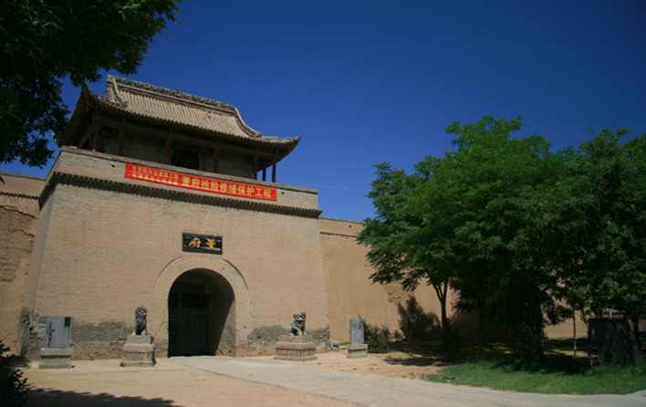 董福祥隨帶著清朝廷賜銀四千兩及親丁三千人,回到金積堡,買下鄉(xiāng)紳郭舉人的一片湖塘。1902年(光緒二十八年)開始了建蓋“宮保府”的龐大工程,歷時三年而成。初建是耗銀數(shù)十萬兩,動用人工三百萬個,耗糧250萬千克,占地百余畝。整體建筑有內(nèi)寨、外寨、護(hù)府河和主體建筑群落四部分組成,現(xiàn)僅存內(nèi)寨和主體建筑。