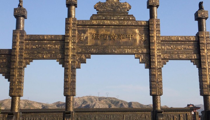 中華黃河壇牌樓是黃河壇的正門。這個15.8米高,45米跨度的10柱9門特大型牌樓,是我國目前最大的青銅牌樓,歷史上也聞所未聞,顯示了黃河文化博大精深的恢宏氣魄。