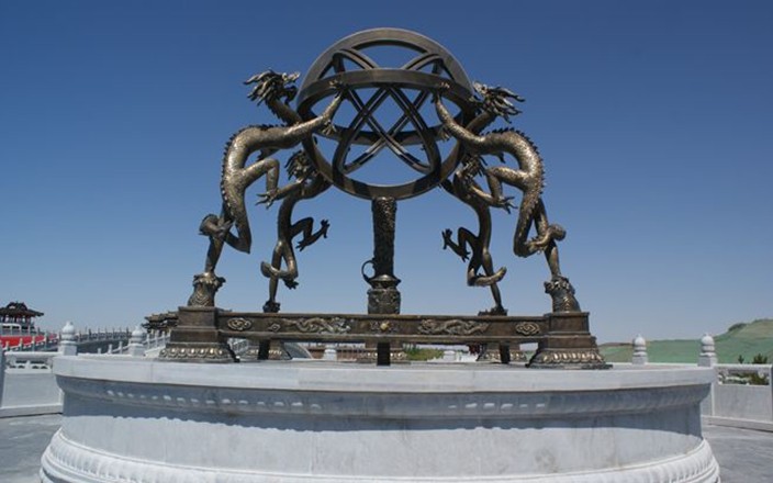 黃河壇全稱是“中華黃河壇”,也稱為“中華黃河圣壇”,是黃河金岸的標志性建筑,位于寧夏回族自治區(qū)吳忠青銅峽市,為了禮敬黃河、祭拜黃河、感恩黃河,黃河壇于2010年5月開工建設,2011年4月底建成,總設計是馮欽鐸教授。黃河壇長999米,寬200米,建筑面積是6.5萬平方米,背靠賀蘭山山脈,隔河屹立牛首山,左傍萬里黃河臂彎,右依青銅峽峽口。