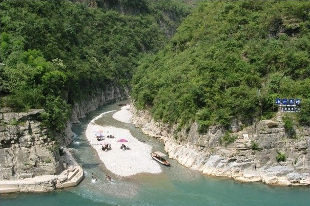 長灘峽:自雙河至平河,全長5公里。峽中有一段長約2公里的河灘,寬十余米,筆直一線,水平如鏡,沙石潔白,兩岸山水掩映,故名長灘峽。峽內(nèi)谷窄山高,絕壁對峙,氣勢雄險;水清見底,水中游弋品種繁多的魚類;沿岸多有色彩斑斕的卵石,時或見古生物化石。峽內(nèi)有滴水巖、聰明泉、手爬巖、穿洞子等景致。