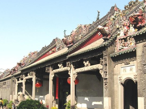 陳家祠堂坐落于廣東省廣州市中山七路。陳家祠堂又稱(chēng)“陳氏書(shū)院”,始建于清光緒十四年(1888年),光緒二十年(1894年)落成,它是由清末廣東省七十二縣的陳姓聯(lián)合建造的,是廣東省著名的宗祠建筑。陳家祠堂的建筑結(jié)構(gòu)可分為三軸、三進(jìn),建筑面積達(dá)8000平方米。祠堂的每進(jìn)之間既有庭院相隔,又利用廊、廡巧妙地聯(lián)接起來(lái),共有九座廳堂和六個(gè)院落,祠堂的整體布局上下對(duì)稱(chēng),殿堂樓閣,虛實(shí)相間,氣勢(shì)雄偉。“聚賢堂”是陳家祠堂中軸線的主殿堂,也是陳家祠整個(gè)建筑組合的中心,堂的正面是一座寬闊的石露臺(tái),周?chē)们队需F花的石欄板環(huán)繞。祠堂建成之初時(shí)的聚賢堂是供族人集會(huì)之用,后來(lái)改作宗祠,兩邊的側(cè)房供書(shū)院使用。