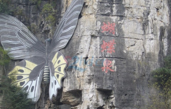 首先是“泉”。蝴蝶泉的水是從巖縫沙層中浸透出來的,水質(zhì)特別清冽,一 出地表便匯聚成潭,沒有任何污染。蝴蝶泉奔瀉而出的泉水,近年來又被公園管理者十分珍惜地蓄積于三個(gè)一潭比一潭大的水潭之中,供人觀賞,最大的一潭約10畝。蝴蝶泉由過去的一潭,變?yōu)楝F(xiàn)在的四潭,這是蝴蝶泉公園內(nèi)最顯眼的景觀。