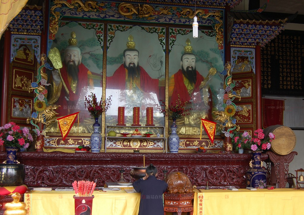 天師洞洞中有“天師”張道陵及其三十代孫“虛靖天師”像。自建福宮北行兩公里即至青城主觀——天師洞。天師洞始建于隋朝大業(yè)年間,三面環(huán)山,一面臨澗,古樹參天,古分幽靜?,F(xiàn)存殿宇建于清末,規(guī)模宏偉,雕刻精細(xì),并有不少珍貴文物和古樹。相傳東漢末年張道陵曾在此講經(jīng)傳道。版權(quán)所有聊城聊之旅旅行社有限公司,轉(zhuǎn)載必究!觀內(nèi)正殿為"三清殿",殿后有黃帝祠和天師洞等古跡。天師洞右下角有一小殿,名三皇殿,內(nèi)有軒轅、伏羲、神農(nóng)石像。洞門前有一株古銀杏樹,高約50余米,胸圍7.06米、直徑2.24米。據(jù)說乃張?zhí)鞄熓种玻瑯潺g已達(dá)1800余年。