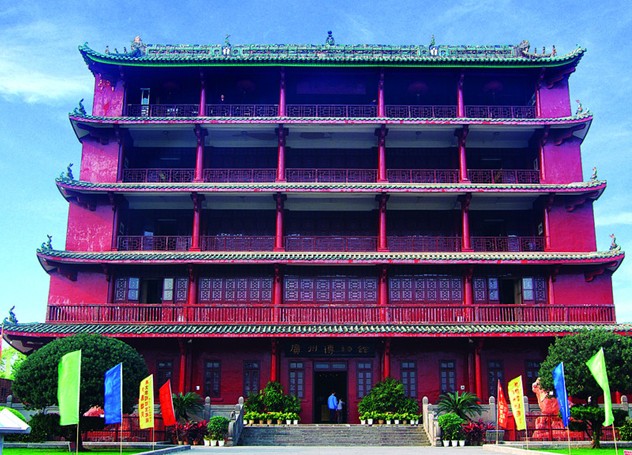 明洪武十三年(1380年),永嘉侯朱亮祖擴建廣州城時,把北城墻擴展到越秀山上,同時在山上修筑了一座五層樓以壯觀瞻。鎮(zhèn)海樓歷史上曾五毀五建,現(xiàn)建筑為鋼筋混凝土結(jié)構(gòu),是1928年重修時由木構(gòu)架改建成。1929年成為廣州市市立博物館。1950年改名廣州博物館,分朝代陳列廣州城2000多年發(fā)展的文物史料。