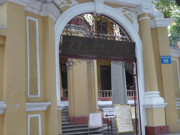 中華全國總工會舊址是中華全國總工會成立后的第一個總部所在地。在越秀南路93號。原為惠州會館,1924年為國民黨中央工人總部,1925年中華全國總工會遷此。 1925年5月7日,在中國共產黨的領導下,第二次全國勞動大會在廣州召開,決定成立中華全國總工會,選舉林偉民、劉少奇為正副委員長,蘇兆征、鄧中夏、李立三、李森等為執(zhí)行委員。全總成立后,此處成為大革命時期領導全國工人運動的中心。1927年1月,全總北遷漢口,這里改為全總駐廣州辦事處,4月被封閉。舊址為三層樓房。一樓是廣州工代會禮堂和辦公室,二、三樓是全總禮堂和辦公室。1958年會址修繕復原,辟為紀念館。1926年在門前兩側修筑“工農運動死難烈士紀念碑”和“廖仲愷先生犧牲處紀念碑”。