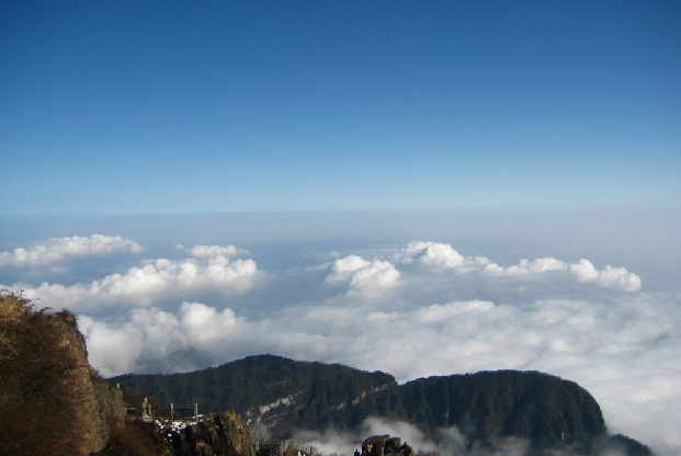 峨眉金頂與峨眉頂峰的萬(wàn)佛頂相鄰,海拔3079.3米,這里山高云低,景色壯麗,游客可在陡峭的舍身