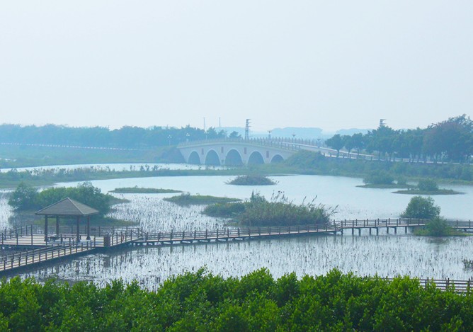 途中景點: 荷塘景觀 > 鳥類覓食區(qū) > 蘆葦區(qū) > 海景長廊 > 紅樹林區(qū) > 蓮花區(qū)