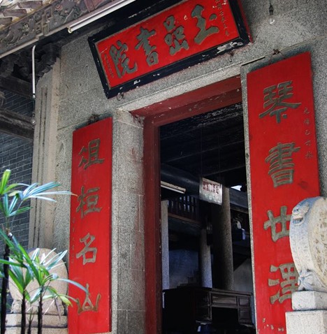 余慶樓平面呈凹字形,當(dāng)中為觀魚池,三面以廊式樓圍抱,后與玉巖堂相連。余慶樓重檐歇山頂,碌筒瓦面,正面面闊5間16.7、深1間3.8米,5架通檐用2柱,柱外施插栱。門上“玉巖書院”木匣署嘉靖年款。