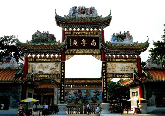 南粵苑位于廣州番禺沙灣鎮(zhèn)紫坭村大川崗,東臨紫坭河,南接寶墨園,西倚村民居,北望耕作區(qū),占地100多畝,是一座山水園林與嶺南建筑相融合、藝術(shù)珍品與嶺南園林并茂的大型山水園林。南粵苑是嶺南名園寶墨園的“姐妹園”,是寶墨園建設(shè)的深化與伸延,她展現(xiàn)了沙灣歷史文化名鎮(zhèn)和禺山風(fēng)采。但與寶墨園相區(qū)別的是,寶墨園盡顯嶺南水鄉(xiāng)風(fēng)韻,南粵苑則更集中展示嶺南建筑藝術(shù)精髓。南粵苑的誕生可謂是番禺旅游的一張新名片,也是沙灣文化古鎮(zhèn)的一道亮麗風(fēng)景線。