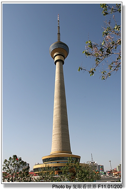 中央電視塔由棧橋廣場、退臺環(huán)廊、塔基、塔座、塔身、塔樓和桅桿組成。塔的造型別致,祈年殿式的重檐形式塔座;從地面升高到223米處,筒徑半徑向外挑出10米,形成一宮燈形的塔樓。這樣的高塔在國外一般采用鋼結構,要耗費數(shù)目驚人的鋼材。為了提高塔的整體穩(wěn)定性和抗震性,中央電視塔采取的是混凝土整體澆注法,能達到抵抗九級地震的要求。