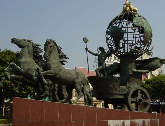 時(shí)代廣場可容納2.5萬人,四周環(huán)列四大文明古國的藝術(shù)雕塑造景和12位世界科技文化名人的銅像。中心舞臺(tái)可旋轉(zhuǎn)、升降變化,3個(gè)拱形方柱,充滿現(xiàn)實(shí)主義的建筑風(fēng)格。每當(dāng)夜幕降臨,這里將上演一臺(tái)由500名中外演員參演、氣勢壯觀的大型舞蹈《戰(zhàn)王與女神》或具有異國情調(diào)的《美國百老匯風(fēng)情---今夜狂歡》。其藝術(shù)燈光和艷麗的空中裝飾達(dá)3萬平方米,加之2500平方米的音樂噴泉和800平方米的水幕電影,形成了多姿多彩、奇幻無窮的舞臺(tái)背景。充滿浪漫色彩的巴黎歌劇院,設(shè)有750個(gè)座席,一臺(tái)以《五羊神女的夢幻》為主題的艷麗之舞,令游人如癡如醉。古希臘劇場的大馬戲、雜技和競技、斗雞斗羊表演,時(shí)而令人驚心動(dòng)魄,時(shí)而讓人捧腹大笑。英國劇場表演的歐洲各國的宮廷舞、爵士樂、輕歌劇,使游人領(lǐng)略到歐陸風(fēng)情及其藝術(shù)魅力。阿拉伯劇場以《天方夜譚》故事為主線創(chuàng)作的多種形式、多種類型的藝術(shù)表演,向游人展現(xiàn)了阿拉伯文化特色和特有的風(fēng)土人情。日本劇場的柔道、摔跤、武術(shù)和現(xiàn)代舞表演,則給人以耳目一新的感覺。