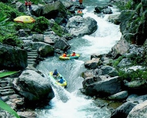 龍川九龍灣位于楓樹壩水庫下游至黎嘴河鎮(zhèn)河段,因楓樹壩水庫的保溫效應,冬季水溫比空氣溫度高6至8℃,從而形成“冬江水暖、江霧蒸騰”的奇觀,因此成為目前我國唯一的冬季漂流的去處。 九龍灣漂流,全程十三公里,是廣東著名的漂流勝地。有位澳門游客幽默地說:“在此漂流可漂到珠海、漂到澳門?!本琵垶尘徘删艦常粸骋积?zhí)?盡顯"幽、曲、翠、秀、真、古、奇、情"特色,神奇迷人。