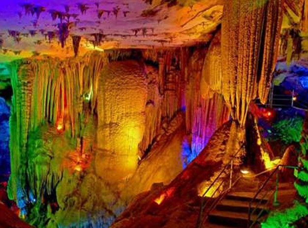 圣跡蒼巖分旱巖和地下河,天然溶洞分為旱洞和水洞兩個部分,已有3億年的歷史。為舊時“連平八景”之冠,洞內石鐘乳千姿百態(tài),維妙維肖,置身其中,如步入神奇的藝術華堂。現(xiàn)是連平縣乃至河源市的著名旅游景區(qū),常年都有大批游客到此游覽、觀光。旱洞橫穿山腰,分3層,高89米,洞內面積達400多平方米,可容數(shù)千人。溶洞奇觀千姿百態(tài),神奇獨特,巧奪天工。巖洞內石筍、石鐘乳千姿百態(tài),琳瑯滿目,“層巖石佛”、“姜公釣魚”、“石靈猴”、“石觀音”、“九龍過江”、“大佛坐禪”、“擎天柱”等惟妙惟肖。