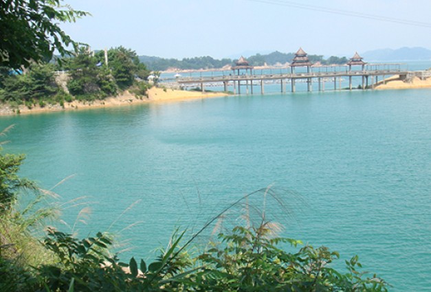 水月灣是根據(jù)小說(shuō)《鏡花緣》建成的,《鏡花緣》里記載百花仙子降生于廣東河源縣水月村。經(jīng)過(guò)一條長(zhǎng)長(zhǎng)的走廊親水長(zhǎng)廊,99個(gè)我國(guó)上下五千年來(lái)各名家所書(shū)的“水”字配上繽紛的彩繪說(shuō)明,讓人領(lǐng)略到的是悠久水文化的獨(dú)特魅力。在得月茶軒,一杯湖水沏泡的清茶,一碟客家風(fēng)味小吃,品味到的是萬(wàn)綠湖最秀麗的水光山色。躍入親水泳場(chǎng),演繹的又是萬(wàn)綠湖不一樣的激情,讓人親近純潔,倍感身心洗禮;玩轉(zhuǎn)各種水上娛樂(lè)項(xiàng)目,這樂(lè)趣,非此地不可得。
