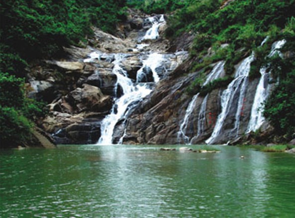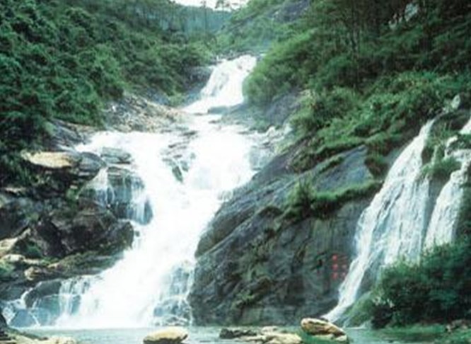 湯泉風景區(qū)最有名的當數(shù)九龍?zhí)镀俨肌厝鞅钡腻氤咧b,上蒼再顯神靈,又施仁愛,拋下一串“珍珠”———九龍?zhí)镀俨?,它在群山深處奔突而出,拾級而下,一步一潭,至山底第九潭,但見奔雷飛雪而落,蛟龍騰空而降,終聚九龍?zhí)镀俨肌厝推俨歼@一暖一涼,地下天上,遙相呼應,交相輝映,這在現(xiàn)代林林總總的人文景觀大家族中,可謂鳳毛麟角。