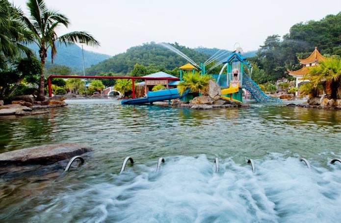 在中國第一個溫泉之鄉(xiāng)——恩平市,有一座被環(huán)嶺群峰擁抱著的溫泉山,山下的三十多處自噴溫泉,日流量為6000立方米,其溫泉水溫高達(dá)73℃,水質(zhì)晶瑩幼滑,并含有偏硅酸、氟、氫、硫等多種有益于人體健康的元素,是世界少有的滑溫泉,這就是帝都溫泉。