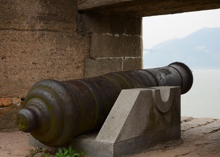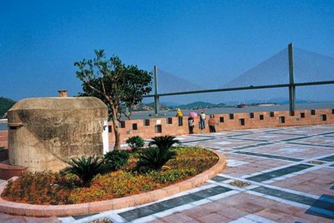 崖門古炮臺位于新會崖門出海水道東岸的古井鎮(zhèn)官沖村,最早設置于清康熙五十七年(1718年),并形成雛形,后于清嘉慶十四年(1809年)正式設立興建。崖門古炮臺雄踞新會崖山,倚山面海,緊緊扼守著珠江八大出??谥弧麻T通往南海的進出水道。崖門大橋是跨越崖門水道的特大型雙塔單索面斜拉橋,全長1289米,跨度668米,橋下可通航5萬噸級船舶,跨度之大為目前國內(nèi)同類型橋梁之最,亞洲第一,世界第二。