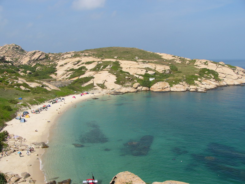 島上最優(yōu)美的景點(diǎn)莫過于竹灣沙灘了,沙粒潔白如雪、纖細(xì)若塵、是由海洋生物化學(xué)而成。廟灣島的“灣”即源自竹灣,而“廟”則是竹灣正中岸上的北帝廟,不過現(xiàn)在僅剩下遺址,只能隱約看見遺留下的門額石匾“北帝宮”三個(gè)陰文。島上居民以捕魚為生,熱情好客。