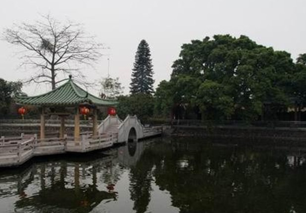 明代建筑,原為天后廟,由于潮連四面環(huán)海,為保海上出入平安,鄉(xiāng)人立神廟供奉天后娘娘,后改名為洪圣殿。1984年擴(kuò)建為公園,現(xiàn)有洪圣殿、慈母亭、四眼井等古跡。逢天后誕,前來(lái)供奉之游人不絕。