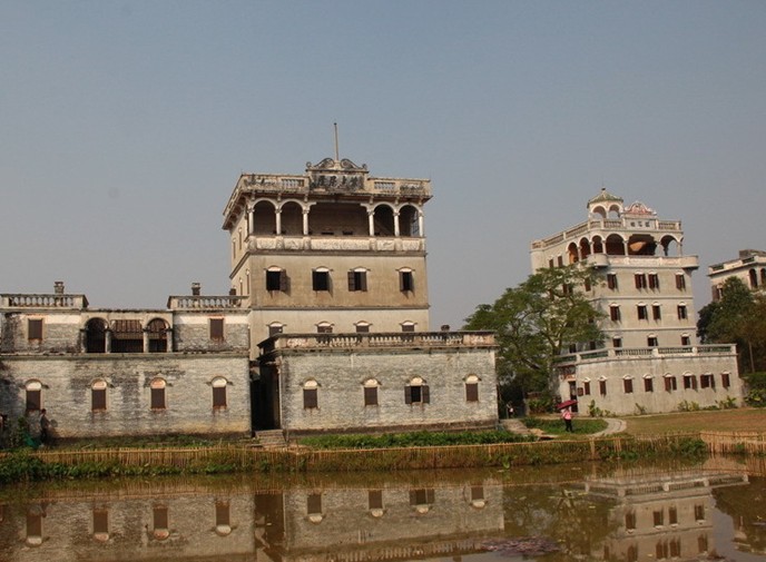 建筑風(fēng)格方面,很多帶有外國的建筑特色,有柱廊式、平臺式、城堡式的,也有混合式的。這些碉樓。有的是根據(jù)建樓者從外國帶回的圖紙興建的。