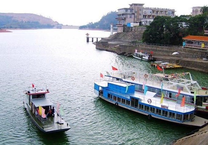玉湖的水是難以描述的。單是集雨面積1022平方公里,水面40平方公里,蓄水11.5億立方米,其本身就蘊(yùn)含著難以想象的誘惑。所以外地人每每問到湖多闊,水多深,魚多大?……他們在身臨其境之前,版權(quán)所有山東聊城聊之旅國際旅行社有限公司,轉(zhuǎn)載必究!往往把她想象成為大海的壯闊,海的高深,海魚的肥美……1959年,水庫建成蓄水,淹沒了良德、石骨、黃塘、均墟四個古老的墟鎮(zhèn)(其中良德墟曾是唐明皇太監(jiān)高力士的故鄉(xiāng)),移民5萬,水最深50多米。也許是山高水深,也許是季節(jié)變更星移物換的緣故吧,水色也跟著變。春水藍(lán)、夏水綠、秋水青、冬水黝藍(lán)。水變山也變,青也罷,綠也罷,湖水卻永遠(yuǎn)是魚的樂園。玉湖中的魚有多少?誰也說不清。80年代初期,漁場曾趕捕撈過最多的一網(wǎng)11萬斤,最重的一尾80多斤,一般的鳙鯉也有20至50斤。每當(dāng)游客凝神碧波綠浪時,只見魚戲波濤,跳躍于浪尖上。如遇酷暑落霞之時,霞光映紅了湖面,四面八方涌來了一群群姑娘,“撲”、“撲”地跳入湖中,揚(yáng)起一串串歡暢的笑聲。此時山在笑,水在笑,笑顫了龍宮,魚兒也聞笑穿梭于姑娘中間,煞是精彩、醉人。