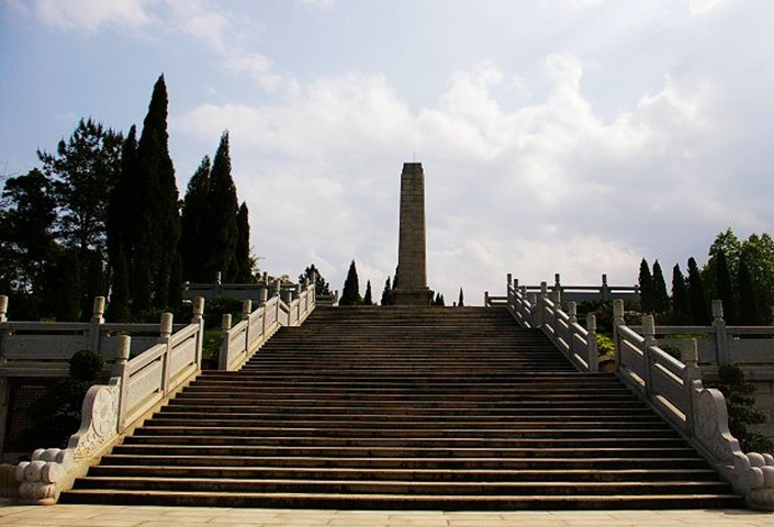 來(lái)到筆枝山頂,“八一”南昌起義軍三河壩戰(zhàn)役烈士紀(jì)念碑就展現(xiàn)在我們面前。這座山,居高臨江,地勢(shì)險(xiǎn)要,易守難攻,總面積達(dá)18萬(wàn)平方米,占據(jù)了筆枝山就等于控制了韓江的交通。溯汀江北上,可到福建長(zhǎng)汀、上杭;沿梅江西航可到江西贛南一帶;沿梅潭河?xùn)|往可到福建閩南的九峰等地;順韓江而下直通潮州、汕頭。舊稱“西通兩粵、北達(dá)兩京”,大家說(shuō)筆枝山的位置重不重要?。?ldquo;八一”起義軍三河壩戰(zhàn)役便是在這座山上激烈開展的。為了紀(jì)念革命先輩的豐功偉績(jī)和這次戰(zhàn)役犧牲的烈士,1963年12月廣東省人民政府撥款興建了紀(jì)念碑,碑高15米,用35種規(guī)格的343塊密紋花崗石砌建而成。碑正面鐫刻著朱德同志的親筆題字:“八一”起義軍三河壩戰(zhàn)役烈士紀(jì)念碑。碑座上刻著第二十五師師長(zhǎng)周士第撰寫的碑文。如今“八一”起義軍三河壩戰(zhàn)役烈士紀(jì)念碑已被列為國(guó)家級(jí)革命烈士紀(jì)念遺址重點(diǎn)保護(hù)單位、省級(jí)文物保護(hù)單位,并成為梅州市、大埔縣愛國(guó)主義教育、革命傳統(tǒng)教育的基地。