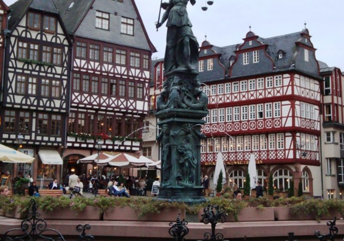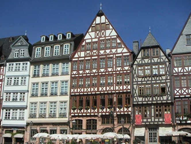 中世紀(jì)時期,羅馬廣場是整個法蘭克福的中心廣場。集市和商品交易會,以及政治性集會和法庭審判都在這里舉行。這個地方可能是由當(dāng)時主宰了當(dāng)?shù)厣探绲囊獯罄倘嗣?。二?zhàn)中,圍繞著這個五角形廣場的桁架樓房遭到了徹底摧毀。二戰(zhàn)后不久,廣場就得以重建,而廣場東邊的那一排樓房,版權(quán)所有山東聊城聊之旅國際旅行社有限公司,轉(zhuǎn)載必究!即古諾斯安格(Grosser Engel),高爾德格萊夫(Goldener Greif),威爾德曼(Wilder Mann),克萊納大赫博格(Kleiner Dachsberg),以及古佑斯勞奔博格(Grosser Laubenberg),直到1980—1986年才得以重建,并且是采用了粉飾性極強(qiáng)的粹克百克風(fēng)格。不久后,人們就發(fā)現(xiàn)了這些建筑物的缺憾之處:才幾年的時間,樓房就出現(xiàn)了很大的裂痕,必須加以修繕。廣場中央建于十六世紀(jì)的正義噴泉使人想起中世紀(jì)法庭審判的情形。
