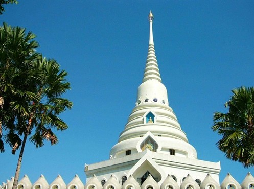 泰國人都叫它“國王廟”。泰國是佛教國家,走進(jìn)泰國每一座寺廟,都可以看到刺眼的金光。彷佛泰國人把所有的黃金都慧贈(zèng)給他們所虔誠膜拜的佛祖,以至于讓你懷疑泰國是不是已經(jīng)躍然成為發(fā)達(dá)國家或者黃金已經(jīng)不再是稀有金屬。九世皇廟的建筑款式與其它廟宇不同,樸素精巧,沒有其它寺廟的金碧輝煌和規(guī)模宏大,一切遵照國王諭示,以節(jié)簡和樸素為原則,蓋成了佛殿、方丈樓、僧舍、綜合樓、水池、廚房和其他必需用房子,每座建筑都是白色的,表示純潔、漂亮.泰國的九世皇廟位于芭堤雅,是專為當(dāng)今國王建造的未來行宮。泰國民眾 圣潔的舍利子塔。