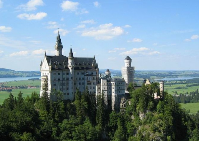 這座城堡是巴伐利亞國(guó)王路德維希二世的行宮之一。共有360個(gè)房間,其中只有14個(gè)房間依照設(shè)計(jì)完工,其他的346個(gè)房間則因?yàn)閲?guó)王在1886年逝世而未完成。是德國(guó)境內(nèi)受拍照最多的建筑物,也是最受歡迎的旅游景點(diǎn)之一。新天鵝城堡是德國(guó)的象征,世界上沒有一個(gè)國(guó)家像德國(guó)那樣擁有如此眾多的城堡,據(jù)說目前仍有14000個(gè)。在眾多的城堡中,最著名的是位于慕尼黑以南富森(Fussen)的阿爾卑斯山麓的新天鵝城堡。由于是迪斯尼城堡的原型,也有人叫白雪公主城堡。建于1869年。從奧格斯堡到富森,光是坐火車一路的風(fēng)景都會(huì)讓遐思神往。這猶如人間仙境的地方藏著有關(guān)魔法、國(guó)王,騎士的古老的民間傳說,還有那無邊原始的森林、柔嫩的山坡、無邊的綠野上漫步著成群的牛羊,積雪終年的阿爾卑斯山和無盡寬闊的大湖。
