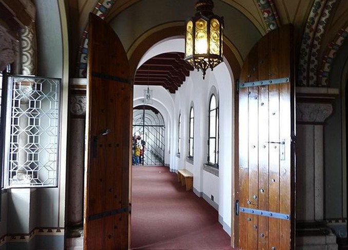 進(jìn)古堡的大門后,只見入口,窗戶,列柱廊等全都是半圓頭拱,這是羅馬式的建筑的特征之一。后面有一堵墻壁上的拱門, 叫作盲拱,在其屋檐下及窗下,設(shè)有串連的小圓頭拱的盲拱帶,緊接著數(shù)間的國(guó)王起居室,版權(quán)所有山東聊城聊之旅國(guó)際旅行社有限公司,轉(zhuǎn)載必究!都是哥德式的建筑,并以瓦格納的歌劇作品中世紀(jì)的傳說作為題材人物所繪制的壁畫作為主題裝飾。