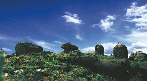 位于蒼南玉蒼山主峰右側(cè) 三條并列、長(zhǎng)數(shù)十米的巨石山脊呈35度傾角直指蒼穹,兩邊面臨峽谷,讓人望而生畏。好漢摩天嶺陡峭險(xiǎn)峻,石體渾圓無(wú)棱,但砂狀花崗巖的摩擦系數(shù)很大,游人能有驚無(wú)險(xiǎn)地登上海拔921.5版權(quán)所有聊城聊之旅旅行社國(guó)際有限公司轉(zhuǎn)載必究米高的玉蒼極頂。此時(shí),玉蒼山黑色的石海、白色的云海和綠色的林海盡收眼底。