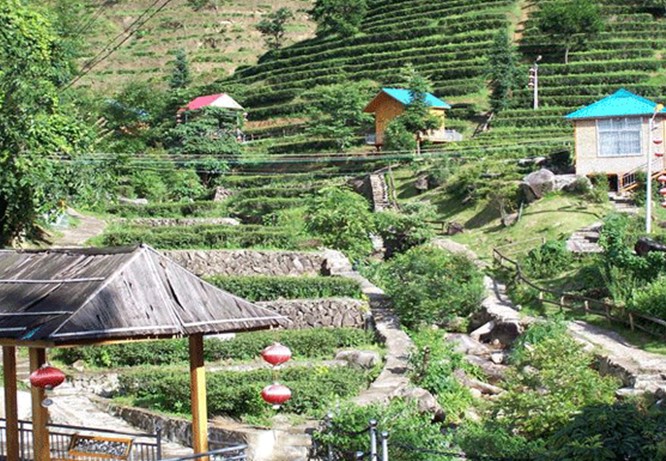 7、西巖山北坪:位于崗頭村西側1km處,這里是當年抗日時期劉永生北江縱隊扎營的地方,也是楓朗鎮(zhèn)的茶業(yè)專業(yè)村。這里有山峰、民居、茶樹梯田景觀,因山坡陡而長,梯田的級數(shù)有30級之多,讓游客震撼。