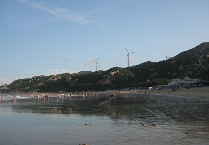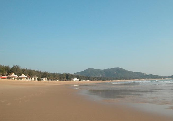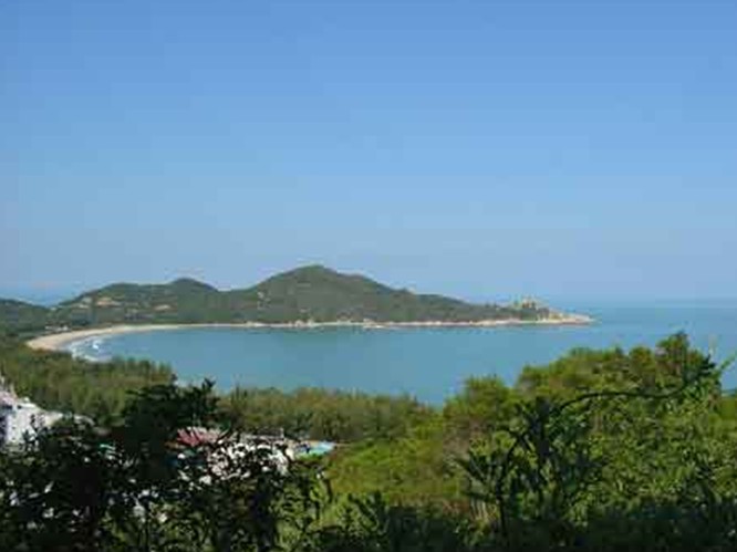 青澳灣,灣口朝東南,灣腹很深,灣弧達2.9公里。嶺頭新建的一座涼亭,名曰:“覽月亭”。成排成片的木麻黃樹循著孤形沙灘蔓延開去。海浪、白沙、林帶以及林中新筑的各式亭臺樓閣,構(gòu)成了色彩斑斕的海市蜃樓圖景。據(jù)說沙灘長達2.4公里,沙帶寬近百米。沙灘向海延伸坡度平緩,數(shù)十米內(nèi)海水僅米余深,是海浴的理想場所,被譽為“泳者天池”,是廣東省僅有的兩個A級海濱浴場之一。