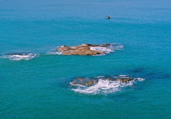 紅海灣與碣石灣交接處突入海的一個(gè)半島,素稱(chēng)“粵東麒麟角”。又稱(chēng)巖島,因?yàn)樗怯山笌r構(gòu)成的。海浪沖擊與自然風(fēng)化的鬼斧神工,造就了奇形怪狀、橫豎各異的礁巖,巨浪撲來(lái),激起沖天浪柱,海浪從空跌落,化作浪花朵朵,猶如“卷起千堆雪”。面對(duì)這浩瀚碧海,目睹這潮來(lái)潮去、排浪巨變,不禁感到豁然開(kāi)朗,豪氣萬(wàn)千,漸漸忘卻枯容,拋開(kāi)煩惱,頓悟“忍一時(shí)風(fēng)平浪靜,退一步海闊天空”的人生至理。