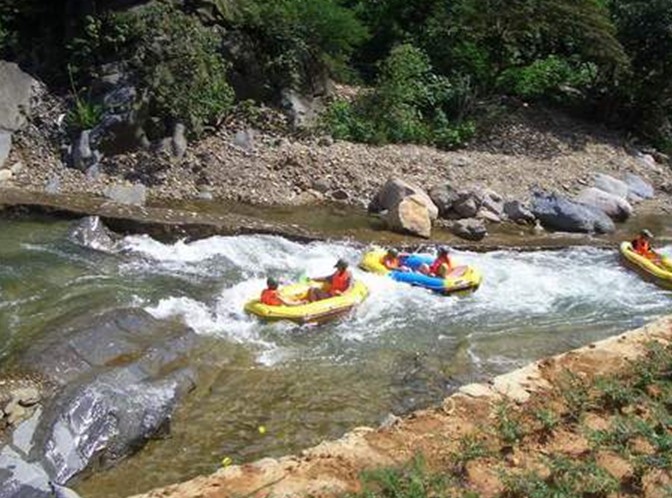 清遠(yuǎn)高田碧水灘漂流位于飛來峽大壩以西12公里的高田鎮(zhèn)山區(qū)。這里溪水清澈,時急時緩,兩岸綠竹搖風(fēng),奇石嶙峋,空氣清爽,是享受漂流野趣的好地方。近有廣東最大的水利樞紐工程——飛來峽大壩和省級飛來峽風(fēng)景名勝區(qū)。 河道全長5公里,林木茂密,空氣清新,水源清澈,水流量大,版權(quán)所有山東聊城聊之旅國際旅行社有限公司,轉(zhuǎn)載必究!全程落差80多米,落差40多處,漂流時間約100分鐘,日接待能力5000人次。山區(qū)內(nèi),林木茂密,層巒疊嶂,龍?zhí)讹w瀑,山花爛漫,郁郁蔥蔥,空氣清新,令人心曠神怡。溪水跌宕流湍其中,清澈見底,溪中奇石星布成趣,小橋如虹,兩岸綠竹扶風(fēng),繁木相掩,千年古榕吐新綠。游客駕馭沖氣皮艇沿溪漂流,時而急流激蕩,時而緩流輕越,間或銀灘相嬉,刺激逍遙盡享。是你回歸大自然,領(lǐng)略田園風(fēng)光,縱情展現(xiàn)自我的理想旅游渡假之地。