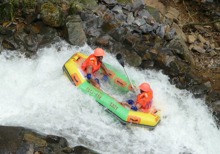 全程勇猛漂河道長4.8公里,總落差168米,大小落差有130多處,漂時(shí)150--180分鐘。全程既可感受澎湃刺激而安全的漂流,又能在自然生態(tài)的環(huán)境中享受一流水質(zhì)的無窮魅力:漂過一山又一山,賞盡一景又一景;人在水中漂,如在畫中游。(提示:1.3米以下的游客請(qǐng)勿參與,16歲以下的游客請(qǐng)?jiān)诔扇伺阃聟⑴c