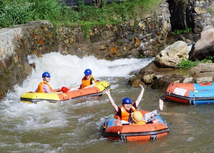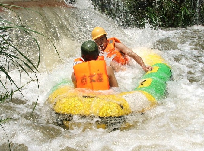 立于灘頭,沿江兩岸有大瑤山隧道、十里畫(huà)廊、龜山、蛙石等景點(diǎn),有十多個(gè)回旋處。在漂流過(guò)程中,可盡享原始森林峽谷漂流之刺激,更可欣賞融山之雄、水之秀、林之幽、花之美、石之奇、瀑之壯、鳥(niǎo)之鳴、魚(yú)之樂(lè)于一身的原始森林山谷風(fēng)光。