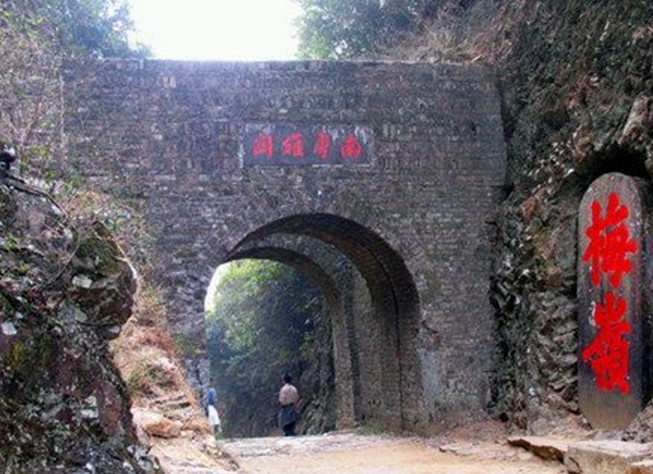 梅關(guān)關(guān)樓地處梅嶺山巔,以“關(guān)隔斷南北天”的氣勢,聳立于梅嶺分水界上,故有“一步跨二省”之說。古時(shí)這里原沒有關(guān),先秦時(shí)梅嶺為楚之“櫪門”,又叫“南戒門”。秦始皇統(tǒng)一中國后,這里始設(shè)橫浦關(guān)。版權(quán)所有山東聊城聊之旅國際旅行社有限公司,轉(zhuǎn)載必究!舊址在今雄余公路上,人稱小梅關(guān)。今殘存的梅關(guān)關(guān)樓稱大梅關(guān)。它是江西省重點(diǎn)文物保護(hù)單位。梅關(guān)始建于宋代嘉祜八年(1063年)??h志載:“江西提刑權(quán)知南安軍,蔡挺立梅關(guān)以分江廣之界。”梅關(guān)因戰(zhàn)爭,使關(guān)樓累圮累修,現(xiàn)存的殘關(guān)關(guān)樓,是明萬歷二十六年(1598年)重修的。原關(guān)樓分兩層建筑,上層為瓦房,下為城門。今上層已倒塌,僅存關(guān)門。門洞深5.5米,內(nèi)寬3.5米,高3.5米,洞門內(nèi)兩側(cè)墻留有閘門逢道和閂門洞眼,說明關(guān)門也重疊數(shù)層,真所謂“一夫當(dāng)關(guān),萬夫莫敵”。城門上,南北二方都有石匾,南面石匾陰刻的是“南粵雄關(guān)”四個(gè)大字,未注落款。城門二側(cè)有聯(lián)曰:“梅止行人渴關(guān)防暴客來”。系光緒癸未年閩汀李化題。北面城門上石碑刊刻的是“嶺南第一關(guān)”五個(gè)大字,落款是明萬歷南雄知府蔣杰書。東側(cè)是登關(guān)樓的惟一蹬道。西側(cè)3米,豎立有一塊赭紅色大石碑,上刻有“梅嶺”兩個(gè)大字,碑高2.7米,寬1.2米,清康熙年間知府書題,字剛勁有力。