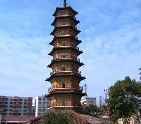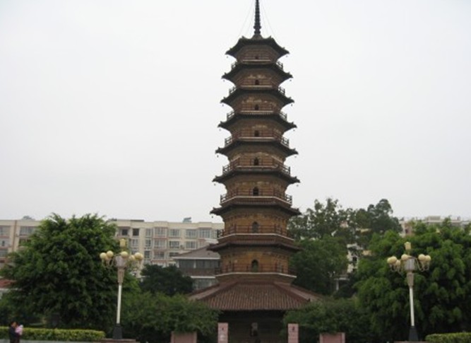 三影塔位于南雄市區(qū)永康路,建于北宋大中祥符二年(公元1009年),明代正統(tǒng)十一年(公元1446年)重修過(guò)。三影塔被列為全國(guó)重點(diǎn)文物保護(hù)單位。三影塔原名延祥寺塔,是延祥寺的一座建筑物,是廣東省僅有的有絕對(duì)年份可考的北宋早期磚塔。在光滑如鏡的寺壁上,竟然可以反射出三個(gè)塔影,一影向上,兩影倒懸,所以延祥寺塔被稱為三影塔。延祥寺內(nèi)的一間廳堂也被稱為“三影堂”,可惜這座古寺廟早已毀掉,由于光線折射而出現(xiàn)的一塔三影的奇觀也隨之消失了。該塔為九層樓閣式磚塔,平面六角形,高50.2米,塔內(nèi)設(shè)有木梯通向頂層,每層樓筑平座建欄桿,每上一層均須鉆出塔門,繞塔身一段,才能進(jìn)入另一塔門,再向上攀登。