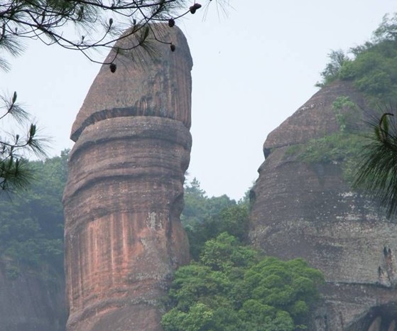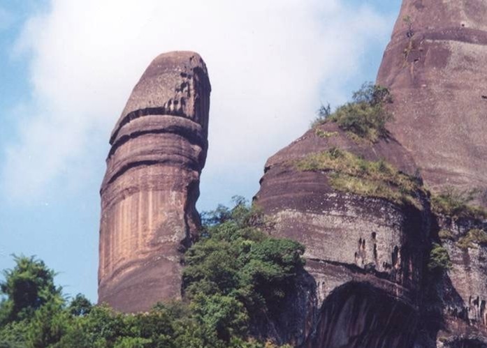 當(dāng)游客沿著山路向山上走時(shí),會(huì)看到寫(xiě)著“雄峰初露”的指路標(biāo)志,抬眼即見(jiàn)陽(yáng)元石的“頭”在山石林木掩映間微微顯露,待繞行至近時(shí),赫赫陽(yáng)元石更是形神畢露,此時(shí)游客當(dāng)中的表情雖說(shuō)不上人生百態(tài),但堪說(shuō)表情各異,有大大咧咧起哄開(kāi)玩笑的,有引經(jīng)據(jù)曲認(rèn)真探討的,有尷尬不好意思的,再讓導(dǎo)游說(shuō)說(shuō)關(guān)于陽(yáng)元石的詩(shī)歌和順口溜時(shí),更會(huì)引來(lái)陣陣的歡聲笑語(yǔ)。