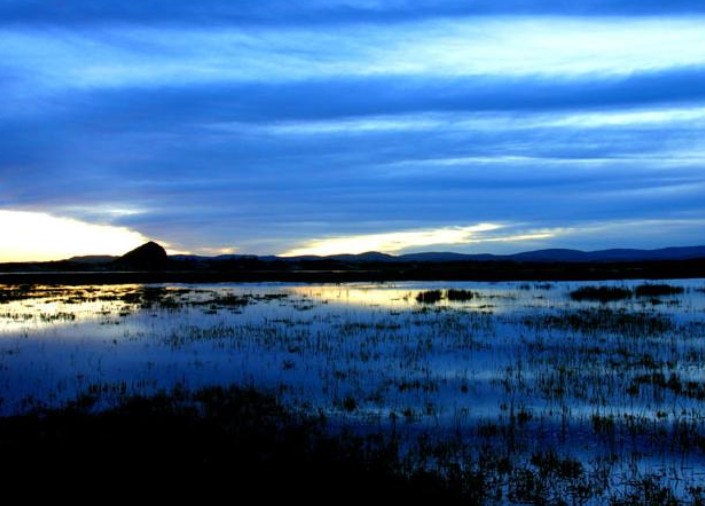 岱海南北長10公里,東西寬35公里。盛夏時節(jié),略呈橢圓型的岱海宛如蓮葉初露,翠色可人。岱海在歷史上文字記載甚詳。漢代稱“諸聞澤”,北魏叫“葫蘆海”,宋元時代稱“鴛鴦泊”,清代蒙古人稱之為“岱根塔拉”,后稱岱海沿用至今。
