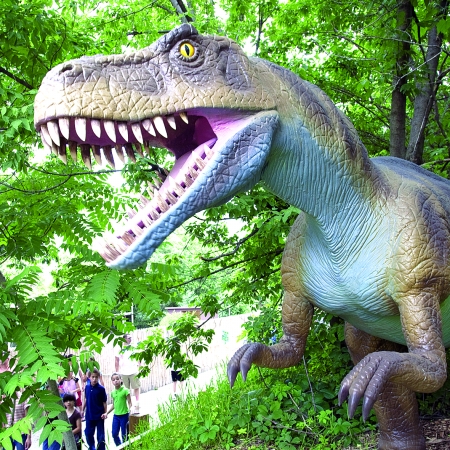 金鷺公司在鴕鳥養(yǎng)殖的基礎(chǔ)上,利用鴕鳥群這一獨(dú)特的景觀和鴕鳥較高的觀賞價(jià)值,開發(fā)了生態(tài)旅游業(yè),1999年12月被河南省旅游局正式批準(zhǔn)為“金鷺鴕鳥游樂園”旅游觀光景點(diǎn), 2000年4月正式對(duì)游客開放。聊城旅游網(wǎng)版權(quán)所有聊城聊之旅國際旅行社有限公司,轉(zhuǎn)載必究!走出了一條“以鴕鳥養(yǎng)殖帶動(dòng)旅游開發(fā),以旅游開發(fā)帶動(dòng)產(chǎn)品銷售”的新路子,園區(qū)先后投資興建了騎鳥場、踩蛋場、太空球、垂釣中心、滑草場、空中索道、人工湖、水上樂園、攀巖、彩彈射擊、峽谷漂流等200多個(gè)特色旅游娛樂項(xiàng)目。金鷺鴕鳥游樂園和北美最知名的恐龍展覽公司加拿大恐龍皇有限責(zé)任公司投資500萬美元興建了我國最大的恐龍科普基地??铸埧破栈卣嫉匕儆喈€,位于鴕鳥園內(nèi), 40多只恐龍是根據(jù)已發(fā)現(xiàn)的恐龍化石,按原始大小仿真制造。這些形態(tài)各異、或兇猛或溫柔的仿真恐龍會(huì)動(dòng)會(huì)叫會(huì)呼吸,皮膚柔軟,肢體靈活,如同復(fù)活一般,栩栩如生地潛伏在鴕鳥園茂盛的樹叢中和水塘內(nèi),有的張牙舞爪,有的低沉吼叫,有的正在下蛋,有的噴水嬉戲。妙趣橫生的恐龍?zhí)矫刂靡欢〞?huì)讓您充滿驚奇與收獲,逼真的場景也會(huì)帶您穿越時(shí)空,夢幻般回到億萬年前的侏羅紀(jì)時(shí)代。